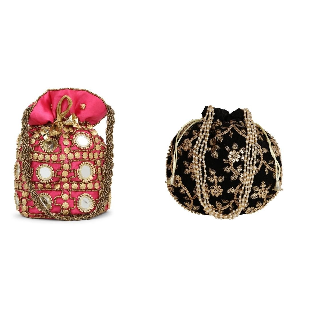 Combo – Designer Embroidered Potli Bag – Red & Black
